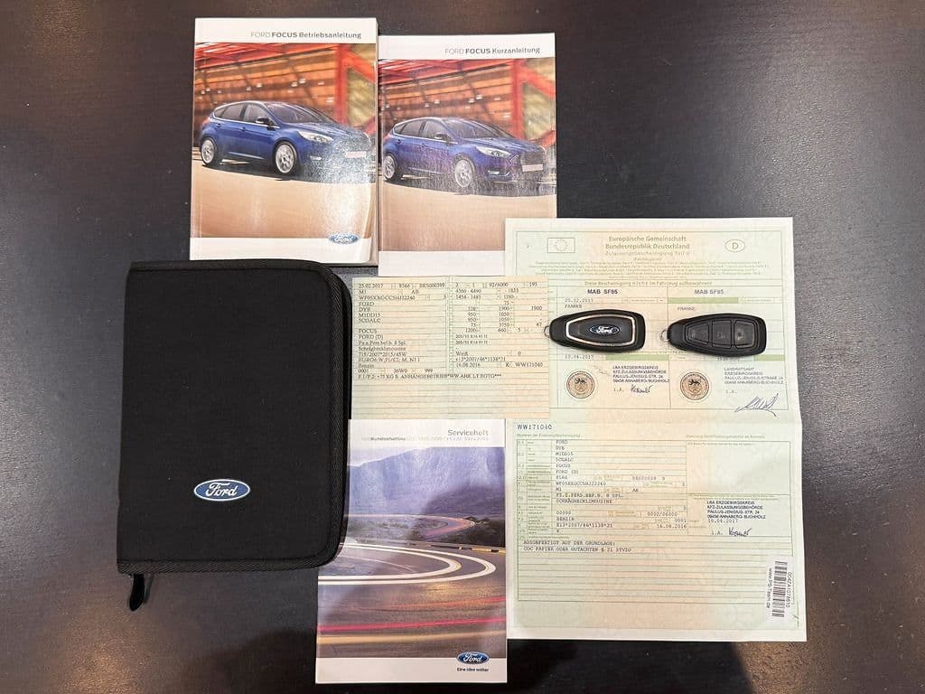 Sonderaustattung: • Front-, Seiten- und Kopfairbags vorne & hinten • Reifendruckkontrollsystem (TPMS) • Elektronische Stabilitätskontrolle + ABS + Traktionskontrolle • Anfahrassistent (Hill Launch Assist) • Notbremsassistent • Einparkhilfe vorne und hinten • Erweiterte Parkautomatik • Rückfahrkamera (falls durch Parkautomatik-System integriert) • Gurtwarner Fahrer & Beifahrer • Isofix-Kindersitzbefestigungen • Kindersicherung hintenKomfort & Innenraum • Sportlenkrad, beheizbar • Beheizbare Vordersitze (Fahrer & Beifahrer) • Abblendbarer Innenspiegel • Manuell verstellbare Vordersitze • 60/40 umklappbare Rücksitzbank • Mittelkonsole mit Armlehne • Laderaumabdeckung + Beleuchtung • Fußmatten vorn (Velours) • Charcoal-Schwarz Innenraum / Dachhimmel Standard • Beheizbare Windschutzscheibe + beheizte WaschdüsenInfotainment & Bedienelemente • SYNC 3 Multimediasystem • Navigationssystem • Multifunktionslenkrad mit Radiosteuerung • 6 Lautsprecher • TFT Multifunktionsdisplay • Bordcomputer • MyKey System • 2x USB + Aux MedienanschlussExterieur & Beleuchtung • 17" Leichtmetallräder • LED-Rückleuchten • Halogenscheinwerfer mit Leuchtweitenregulierung • Nebelscheinwerfer vorne • Stoßfänger und Außenspiegel in Wagenfarbe • Heckspoiler • Doppel-Außenspiegel beheizt, elektrisch verstellbar • Karosseriefarbene Türgriffe außenKlima & Temperatur • Klimaanlage mit Kältemittel R1234YF • Pollen-/Aktivkohle-Innenraumfilter • Zusatzluftheizer (für schnellere Wärme im Winter)Fahrwerk & Technik • Handling-Aufhängungspaket • Elektrische Servolenkung • 17" Reifen 215/50 • Scheibenbremsen vorne und hinten • Starter mit Start/Stopp-System • Notrad in Stahl